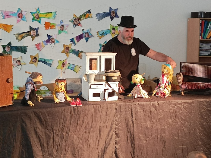Pohádka děti moc pobavila a v jejím závěru si mohly loutky i rekvizity osahat a vyzkoušet.