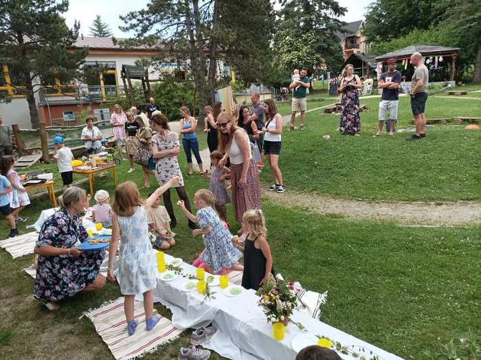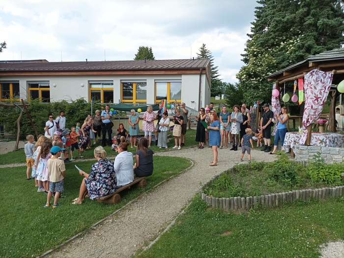 Nejslavnostnější červnová akce pro předškoláky a jejich rodiny začala videem se vzpomínkovými fotkami dětí na čas strávený v mateřské škole. Vše bylo podbarvené laskavými písněmi. Slavnost pokračovala na zahradě samotným loučením s jednotlivými budoucími školáčky, kteří dostali na památku drobné dárečky, laskavá přáníčka, portfolia a náramně si užili velkolepou hostinu s pestrou nabídkou dobrůtek připravených maminkami i samotnými dětmi.