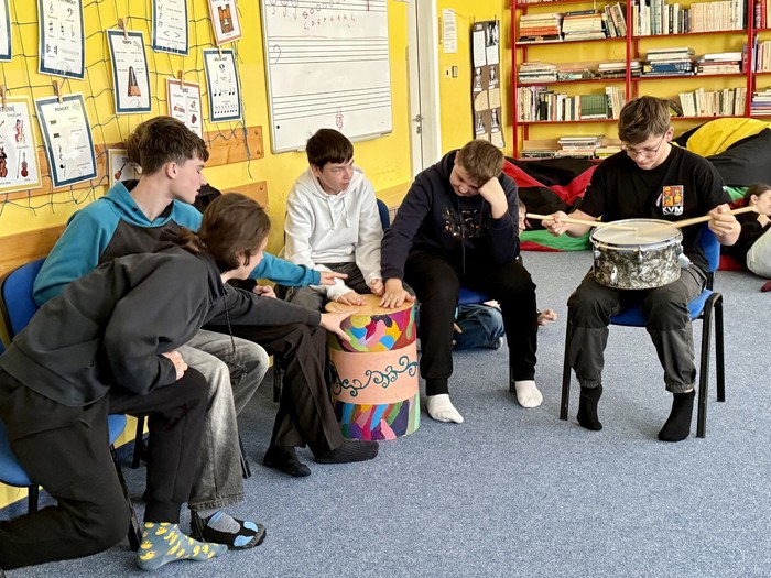 Na závěr hodiny jsme se všichni společně připojili k Bubnovačce, která symbolicky “bubnuje na poplach”, aby násilí na dětech nezůstávalo skryté. Třída se rozezvučela bubny všeho druhu. Společný rytmus vytvořil silnou atmosféru, během níž žáci vyjádřili podporu všem dětem, které potřebují bezpečí a pomoc.