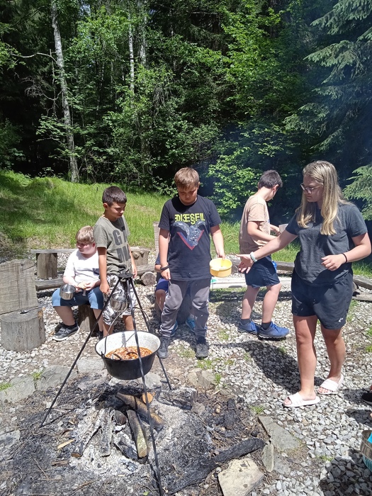 Čtvrťáci se od středy 15. 6. do pátku 17. 6. stali Robinsony. Ztroskotali s přívozem na pustém ostrově, kde obývali stany a vařili si na ohni. Museli se naučit uvázat náramek přežití, vyluštit šifry. Také sdíleli jeskyni s Pátkem, kozou, papouškem a psem. Nechyběla ani bouřka a noční hra :-) Naštěstí nás zachránili a ve zdraví dovezli zpět :-) Moc děkujeme panu Labajovi, díky němuž jsme mohli zažít ztroskotání a záchranu, našim deváťačkám Lence Račákové a Miri Urbanové za pomoc s vařením. Děkujeme i panu Matelovi z firmy VEMAT z Krnova, který nám věnoval šňůry Paracord na výrobu náramků přežití.