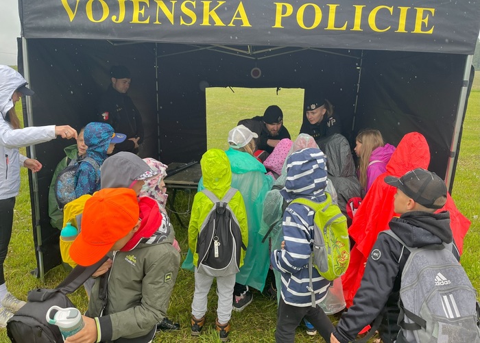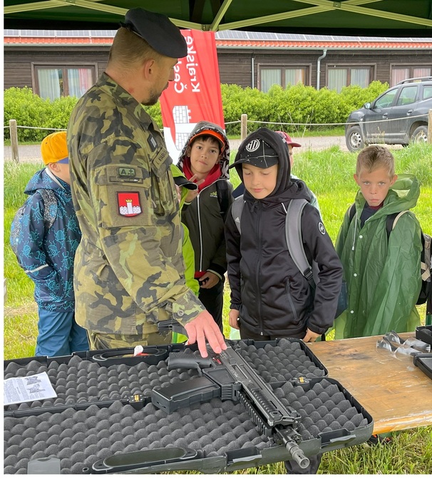 Šli jsme k vojákům. Bylo tam hned několik věcí – koukání do dalekohledu, do auta, taky střelba. Jeden voják nám zamaskoval obličej.