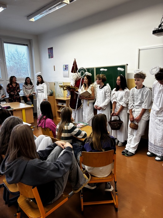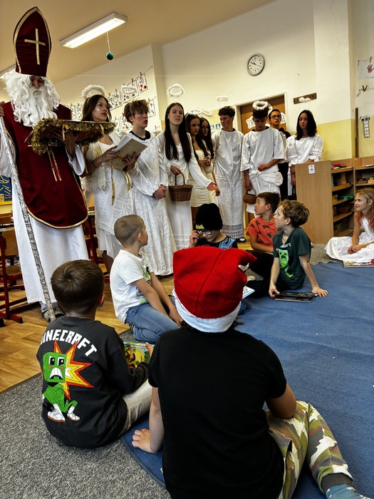 V pátek 5. prosince 2025 ožila naše škola tradiční mikulášskou návštěvou. Do tříd zavítali čerti, andělé a samozřejmě Mikuláš, kteří potěšili nejen žáky školy, ale také děti v mateřské škole. Ty byly na návštěvu krásně připravené. Nikdo se nebál a básničky, které si děti nacvičily, Mikuláše velmi potěšily.
