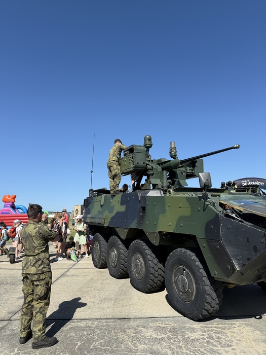 Třídy 7. a 8. B zažily nevšední den na akci Modré nebe nad Českými Budějovicemi. Na letišti obdivovaly stíhačky Gripen, vrtulníky i vojenské výsadkáře při seskoku z letadla. Žáci si mohli sáhnout na obrněná vozidla, prozkoumat moderní techniku a nahlédnout do světa armády. Fascinovaly je ukázky policejních psovodů, záchranářů i hasičů při zásahu. Nechyběla ani možnost vyzkoušet si výstroj a promluvit si s vojáky. Celý den byl plný zážitků, adrenalinu a nových poznatků o práci bezpečnostních složek.