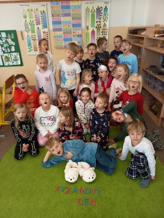 V pátek 14. listopadu jsme se společně oblékli do pyžam a celý školní den jsme strávili právě v nich. Do akce se zapojili nejen žáci, ale i naši vyučující – a vytvořili jsme tak příjemnou, přátelskou a veselou atmosféru, která se nesla celou budovou školy.