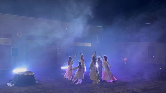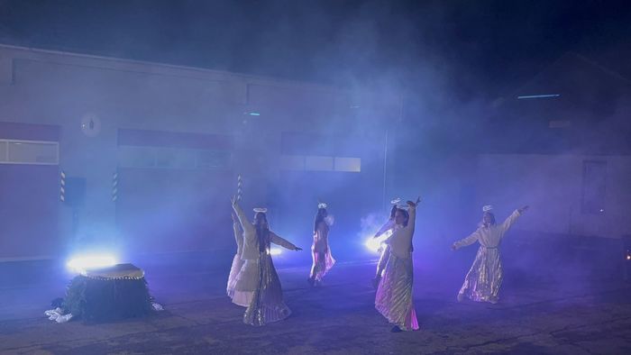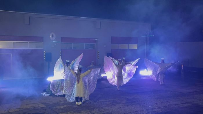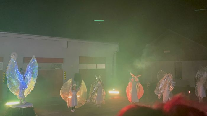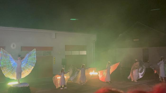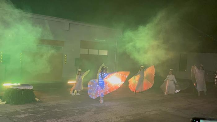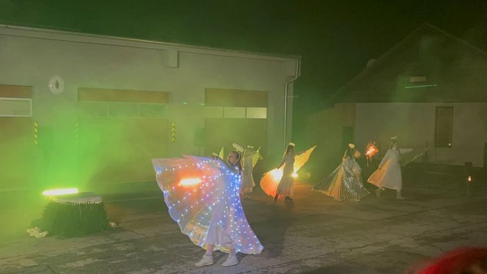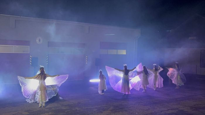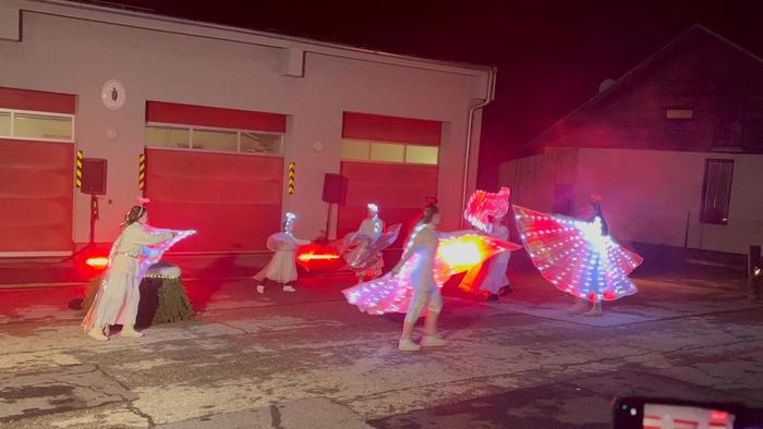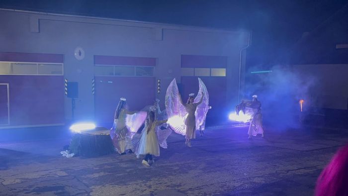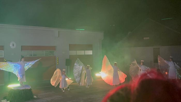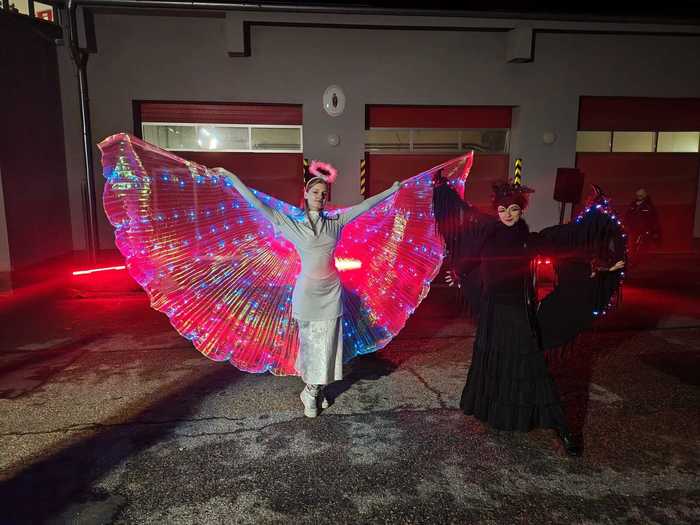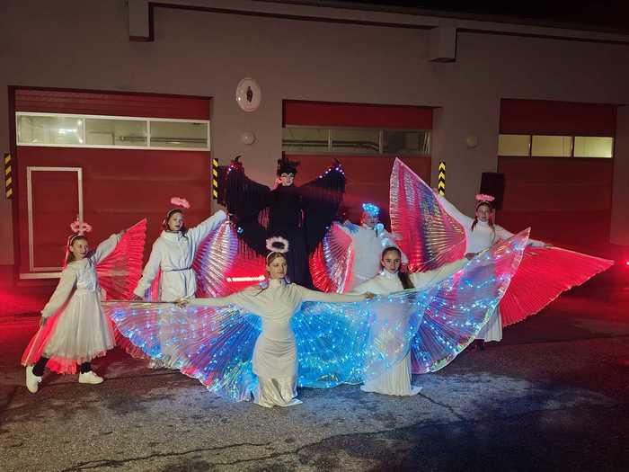 Baletky z Frymballetu ztvárnily v rámci Mikulášského průvodu biblický příběh o padlém andělovi Luciferovi, který byl pyšný a chtěl být více než ostatní andělé. Stal se z něj černý anděl a propadl se až do pekla k démonům, z kterých povstal právě pekelník Lucifer a čerti. Krásná taneční výpravná show se svítícími křídly a vějíři a nádhernou hudbou se líbila všem malým i velkým divákům.