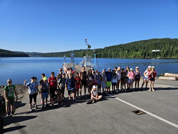 Výlet začal netradičně – převozem přes Lipno! Poté jsme se vydali pěšky do kopce. Cesta byla příjemná, plná smíchu a povídání.
